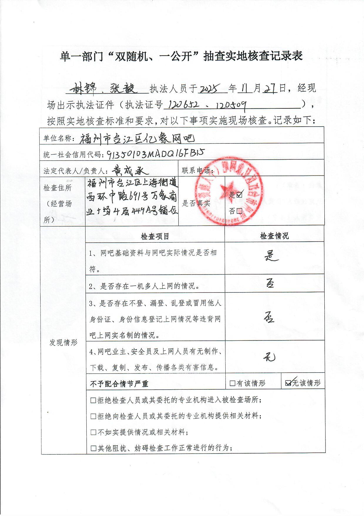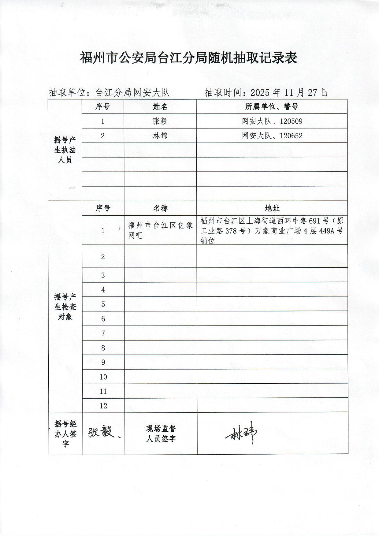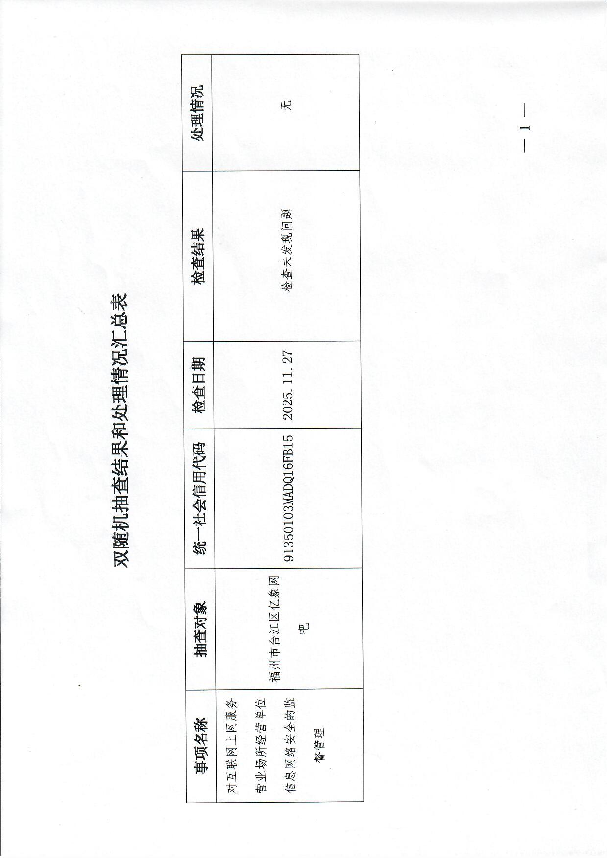 2025年台江公安分局网安大队网吧"双随机、一公开"抽查结果和处理情况公示(第六轮)