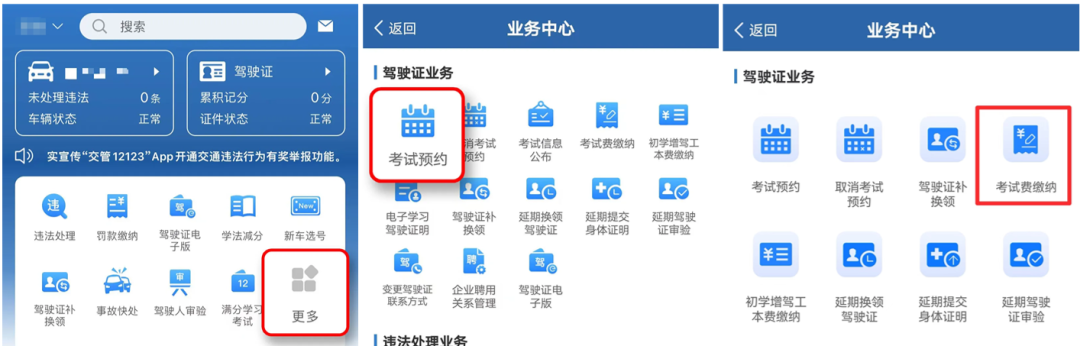 满分学习全部完成后,通过“交管12123”APP进入满分学习 → 提交考试预约申请→缴交考试费→按预约时间和考场前往考试(携带身份证明原件)。