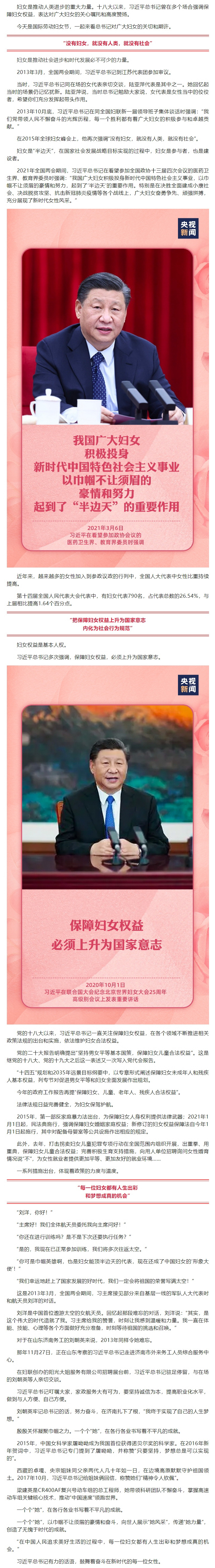 习近平:每一位妇女都有人生出彩和梦想成真的机会