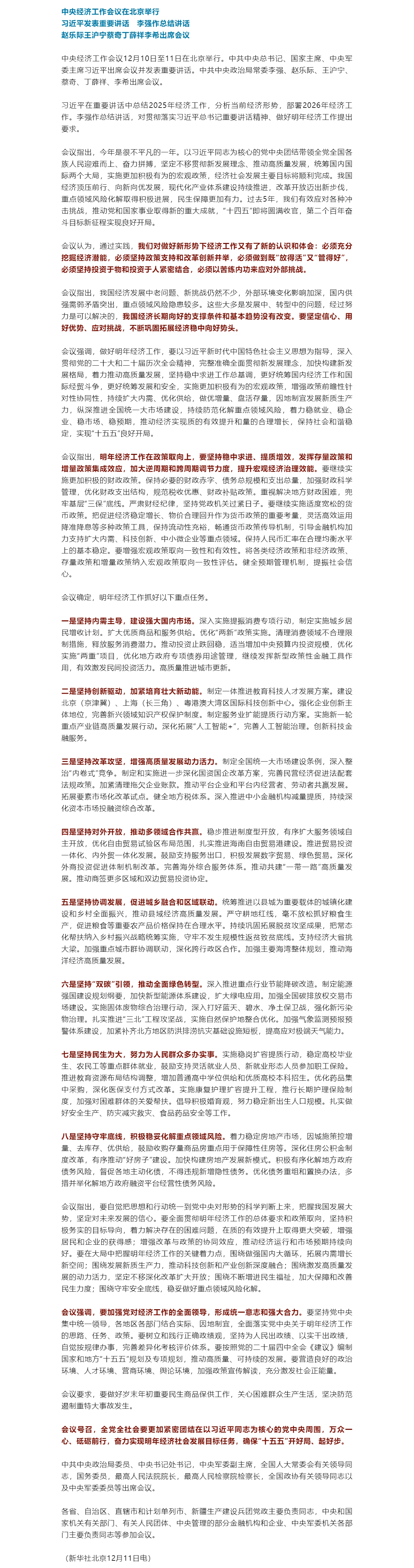 中央经济工作会议在北京举行 习近平发表重要讲话