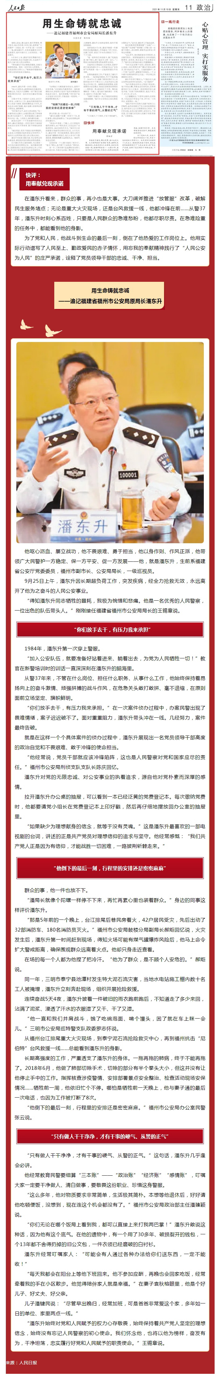 人民日报:用生命铸就忠诚