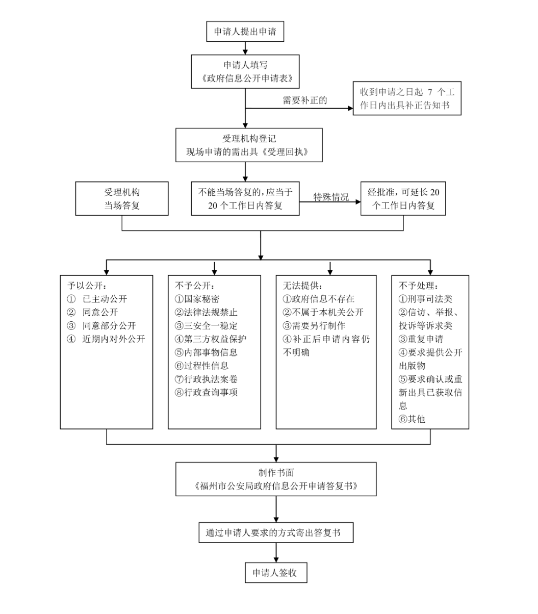 申请人可登录福州市人民政府网站或福州市公安局网站直接填写并递交电子版《福州市政府信息公开申请表》(以下简称《申请表》)。